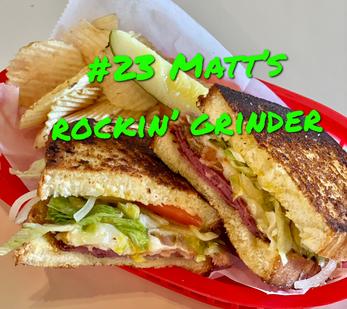 #23. Matt's Rockin' Grinder - Italian grinder with genoa, ham, cheddar, provolone, lettuce, tomato, onion, Italian dressing, grilled on Italian bread.