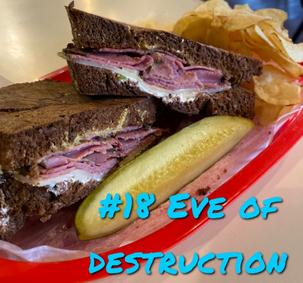 #18. Eve of Destruction - Pastrami, Jarlsberg swiss, cream cheese, Dijon mustard, grilled on pumpernickel.